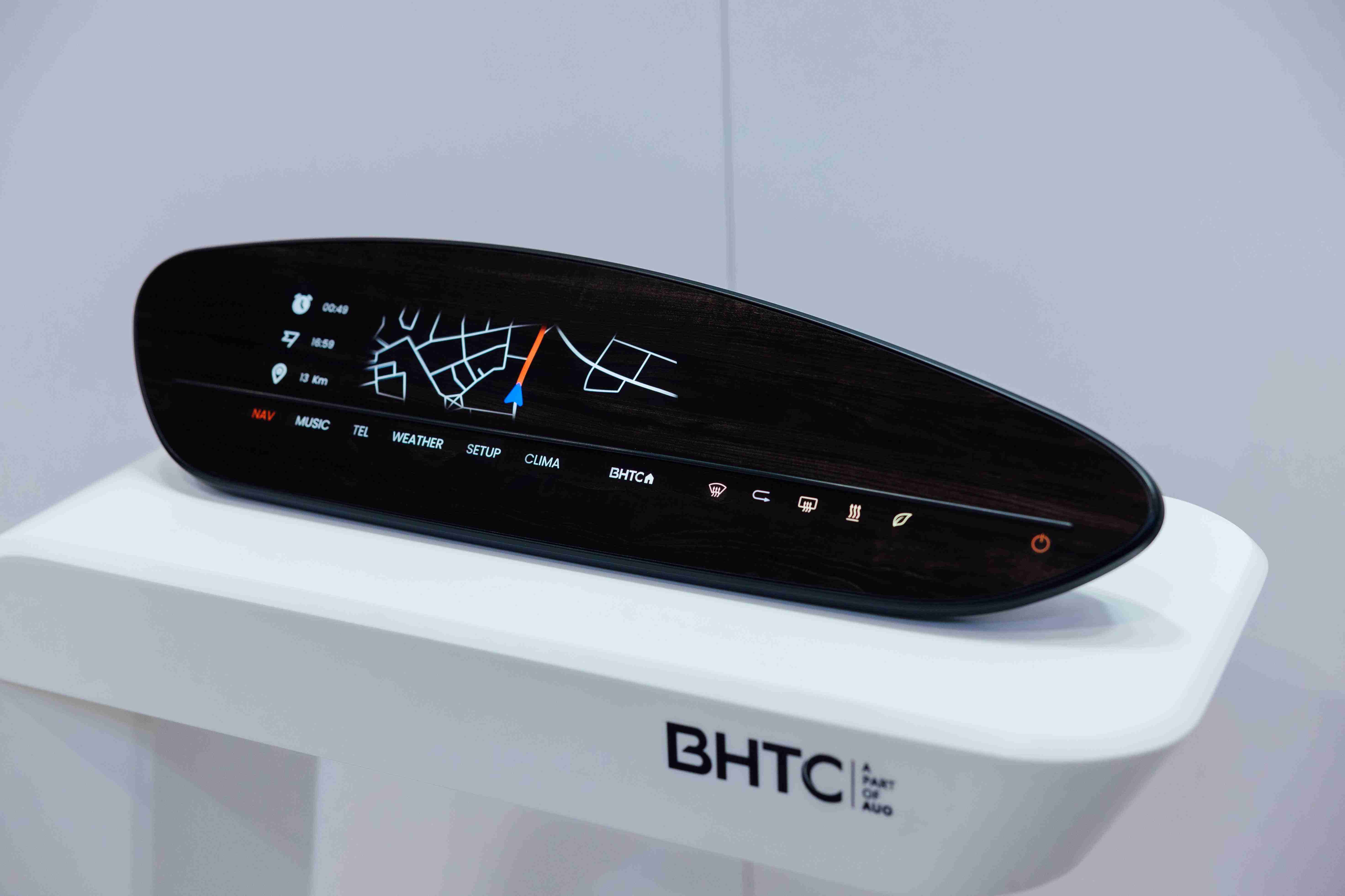 BHTC的木纹车用显示器(Display Behind Wood)将无缝木质表面与显示器结合后,,,可以融入车内设计中,,提供驾驶优质的视觉效果,,,,加上其无边框的设计和亮度调控,,,创造更优质的车内体验。。
