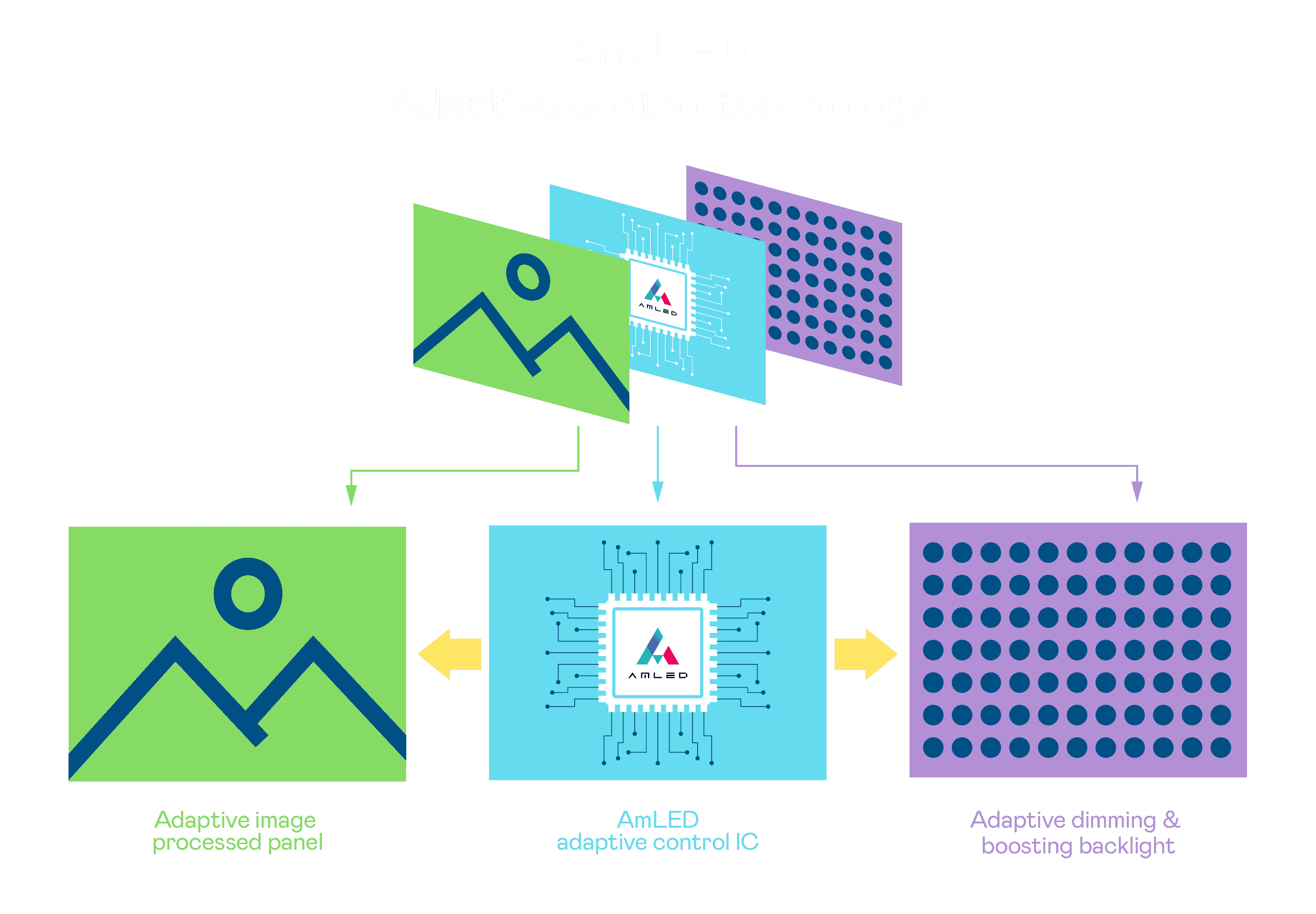 AmLED 具备更省电与低蓝光特性。。。。与一般的 LED 背光显示技术相比,,,由于 AmLED 常时处于局部调光状态,,,,其功耗仅有前者的 50% 左右,,,同时 AmLED 还具备低蓝光特性,,,满足长时间使用的护眼需求。。。。