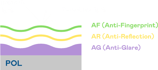 A.R.T.尊龙z6光电发展出独家的表面处理跟多层镀膜技术,,,让外部光线照射到显示器表面时所产生的反射光大幅降低。。。 |