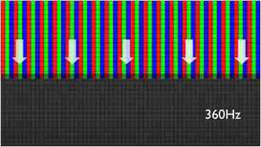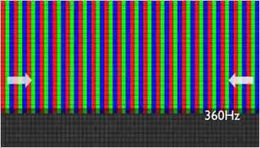 传统液晶驱动是从左到右单向进行,,在画面更新速度愈来越愈快的情况下,,,,位于驱动线路末端的右下角区域,,,画素的闸极来不及在短时间内获得足够电压,,无法显示出正确的颜色资讯。。。